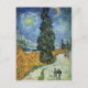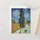 Vincent Van Gogh Road with Cypresses postcard. Oil painting on canvas from 1890. Road with Cypresses is an enchanting landscape completed by Van Gogh at Saint-remy-blanzy. The vibrant use of slithering blues and greens imbues the painting with an almost underwater quality. A great gift for fans of country landscapes, post-impressionism, Van Gogh, and French Art.