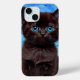 iPhone Case featuring a black cat in Van Gogh’s painting Starry Night! This blue eyed kitten gazes adoringly from a background of blue swirls and a bright yellow moon. A fantastic gift for cat lovers and Dutch art collectors!