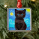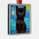 Ornament featuring a black cat in Van Gogh’s painting Starry Night! This blue eyed kitten gazes adoringly from a background of blue swirls and a bright yellow moon. A fantastic gift for cat lovers and Dutch art collectors!