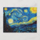 Van Gogh Starry Night postcard. Van Gogh’s most famous painting, Starry Night depicts the view from the artist’s bedroom window at the asylum in Saint Remy de Provence. A beautiful night sky punctuated by yellow stars pulsing above the village church below, Starry Night is a great gift for fans of impressionism, Vincent van Gogh, cloudscapes, and French painting.