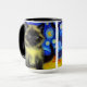 Coffee Mug featuring a Siamese cat in Van Gogh’s painting Starry Night! This fluffy beauty poses in front of a blue night sky with shining moon and stars. A cozy gift for cat lovers and Dutch art collectors!