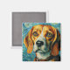 Brighten your space with this beagle dog square magnet, featuring a captivating, Van Gogh–inspired swirl design in vivid blue, gold, and amber tones. The close-up portrait captures the beagle’s soulful eyes, expressive face, and signature floppy ears, rendered in bold, textured brushstroke patterns reminiscent of 'Starry Night.'