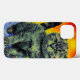 iPhone Case featuring a Van Gogh style cat. This black kitty relaxes on the blue waters of a beach. A sunset of red and yellow fills the sky. A wonderful gift for cat lovers and Dutch art collectors!