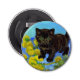 Bottle Opener featuring a Van Gogh style cat with sunflowers! A pretty black kitten cutely poses with yellow flowers. A fabulous gift for cat lovers and Dutch art collectors!