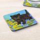 Coasters featuring a Van Gogh style cat with sunflowers! A pretty black kitten cutely poses with yellow flowers. A fabulous gift for cat lovers and Dutch art collectors!