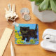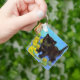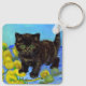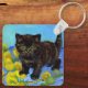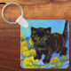 Keychain featuring a Van Gogh style cat with sunflowers! A pretty black kitten cutely poses with yellow flowers. A fabulous gift for cat lovers and Dutch art collectors!