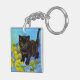 Keychain featuring a Van Gogh style cat with sunflowers! A pretty black kitten cutely poses with yellow flowers. A fabulous gift for cat lovers and Dutch art collectors!