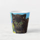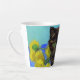 Latte Mug featuring a Van Gogh style cat with sunflowers! A pretty black kitten cutely poses with yellow flowers. A fabulous gift for cat lovers and Dutch art collectors!