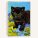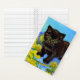 Notebook featuring a Van Gogh style cat with sunflowers! A pretty black kitten cutely poses with yellow flowers. A fabulous gift for cat lovers and Dutch art collectors!