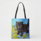 Tote Bag featuring a Van Gogh style cat with sunflowers! A pretty black kitten cutely poses with yellow flowers. A fabulous gift for cat lovers and Dutch art collectors!