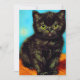 Card featuring a Van Gogh style pouting kitten. A fluffy black kitty looks at the viewer with an extended lower lip—she just wants some attention! A gorgeous gift for cat lovers and Dutch art collectors!