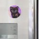 Magnet featuring a Van Gogh style cat with purple background. This black kitty looks at the viewer adorably! A great gift for cat lovers and Dutch art collectors!