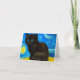 Card featuring a Van Gogh cat in the style of Starry Night! A fluffy black kitten perches on a table against a blue night sky and yellow moon. A purr-fect gift for cat lovers and Dutch art collectors!