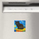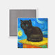 Magnet featuring a Van Gogh cat in the style of Starry Night! A fluffy black kitten perches on a table against a blue night sky and yellow moon. A purr-fect gift for cat lovers and Dutch art collectors!