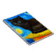 Planner featuring a Van Gogh cat in the style of Starry Night! A fluffy black kitten perches on a table against a blue night sky and yellow moon. A purr-fect gift for cat lovers and Dutch art collectors!