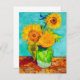 Card featuring Vincent van Gogh’s still life painting depicting a bouquet of sunflowers in a green vase. Part of his initial version in the Arles Sunflowers series. A great gift for fans of flower paintings, Post-Impressionism, and Dutch art.