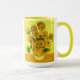 Coffee Mug featuring Vincent van Gogh’s oil painting Vase with Fifteen Sunflowers (1888). The art depicts a still life of fifteen beautiful sunflowers in a vase. A great gift for fans of Post-Impressionism and Dutch art.