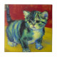 Tile featuring a tabby cat in the style of Van Gogh! This sweet kitty adorably poses on a wooden floor against red walls and a window. An awesome gift for cat lovers and Dutch art collectors!