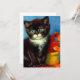 Card featuring a beautiful Van Gogh tuxedo cat! This little kitty poses next to a basket of orange flowers upon a red table. A great gift for cat lovers and Dutch art collectors!