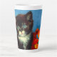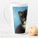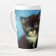 Latte Mug featuring a beautiful Van Gogh tuxedo cat! This little kitty poses next to a basket of orange flowers upon a red table. A great gift for cat lovers and Dutch art collectors!