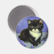 Magnet featuring a tuxedo kitten in the style of Vincent van Gogh! This pretty kitty poses with purple flowers. A superb gift for cat lovers and Dutch art collectors!