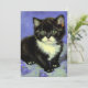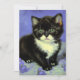 Card featuring a tuxedo kitten in the style of Vincent van Gogh! This pretty kitty poses with purple flowers. A superb gift for cat lovers and Dutch art collectors!