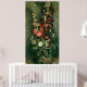 A bouquet of tall red and pink hollyhocks is arranged in a vase against a green background. The brushwork captures the texture and vibrancy of the blooms.