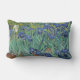 This beautiful pillow is inspired by Irises painted by Vincent van Gogh in 1889. The image boasts blue irises with green stems and leaves with pointy tips planted in the red-brown earth.