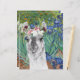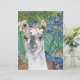 Beautiful and artistic digital compilation features Vincent Van Gogh's Irises fine art painting as a backdrop to an adorable watercolor llama with a fancy crown of flowers.