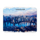 Beautiful retro vintage Vancouver Canada Photo Magnet showing the skyline of the canadian city in British Columbia with its port, skyscrapers and landmarks.