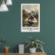 This poster vividly depicts the serene and picturesque scenery of Vancouver Island, featuring snow-capped mountains as a striking backdrop to the deep blue waters of the Pacific Ocean. An orca breaches dramatically off the coast, embodying the wild and untamed spirit of the island. The detailed depiction of nature's grandeur and the dynamic presence of the orca create a scene that is both peaceful and exhilarating.