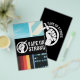 An encircled, stylized clenched fist holding a vaping mod, with the stenciled words "Vape On Strong" on the side. A message to fellow vapers who persevere and fight negativity with knowledge and information.