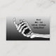 Vape and Smoke Shop business card with graphics of a skull smoking a vape and a hand holding a vap machine.