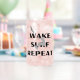 Cette tasse présente un design graphique dynamique d'une personne qui surfe, avec une vague stylisée en dessous et un oiseau volant au-dessus. Les mots "RÉPÉTER LE SURF DE RÉVEIL" sont affichés en caractères gras au-dessus et au-dessous du surfeur. Ce design capte l'excitation et l'excitation du wake surf, ce qui en fait un choix parfait pour les amateurs de sports nautiques.