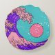 Vaporwave Great Wave: Stylized Ocean Art Round Pillow