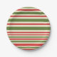 Variable Stripe Christmas Pattern Red Green Cream Paper Plate