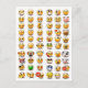 Variations of a Face emoticon, some of which are as follows: happy, mad, sad, angry, smiling, laughing, surprised, listening to music, Dracula, clapping, pirate, applause, in love, crying, one-eye, thumbs up, thumbs down, tired, confused, sleeping, shh, talking on the telephone, embarrassed, whistling, evil, sick, and so forth.