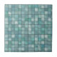 Graphic design of variegated teal coloured decorative tiles for a textured duo-tone pattern of repeated square shapes.