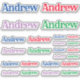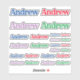 Colourful stickers in a number of different sizes with the Christian name Andrew.