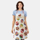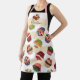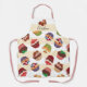 Unique, artsy, fun apron, featuring various, colourful cupcakes illustration over white and blush pink stripes, and custom name, designed by PiccoGrande.