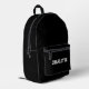 Varsity athletic sports black and white custom name, text or monogram personalized Printed Backpack.