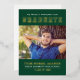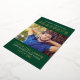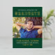 Show your school pride with this bold varsity-style graduation party invitation featuring "Graduate" in gold foil collegiate lettering on a rich green background with a prominent senior portrait. The front reads "We Proudly Announce Our Graduate" for a celebratory touch. The back displays "Graduation Party" event details with a second photo in coordinating green typography on white. All text is fully customizable, including the graduate's name, school, class year, and event details.