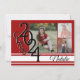 Red, white and black 2024 varsity stripe invitation. Three photos can be added to this festive Class of 2024 Graduation invitation or announcement in red. Customize text on back to fit your needs.
