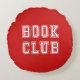 A bookish pillow featuring the words "Book Club" in white against an editable background (click customize to change the background colour).