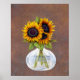 Poster avec un vase de trois beaux tournesols sur un arrière - plan brun et grungy.