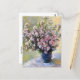 A fine art postcard with the still life painting, Vase of Flowers (1881-1882) by Claude Monet (1840-1926). A blue vase on a table with pink wild mallow flowers in the impressionist style.