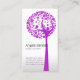 Shapes of leaves, flowers, a little bird and branches make up a purple vector tree, over a simple subdued shaded background.The simple and generic design of this business card makes it suitable as an introductory calling card for environment or nature based businesses, but can also be used for almost any other business.