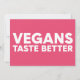 This graphic features bold, pink typography stating “VEGANS TASTE BETTER” prominently. The design employs a modern, eye-catching font that emphasizes the positive message about veganism. The bright colour scheme and strong text create an engaging visual, appealing to those who appreciate or promote plant-based lifestyles. This piece can serve as a slogan for a vegan campaign, restaurant, or awareness initiative