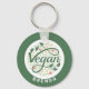 Vegan Creative Typography With Green Leaves Keychain
