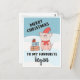 This Vegan Christmas postcard features a nice cartoon piglet with a red hat and scarf and some colourful presents, on a snowy background with the caption "Merry Christmas to my favourite Vegan".